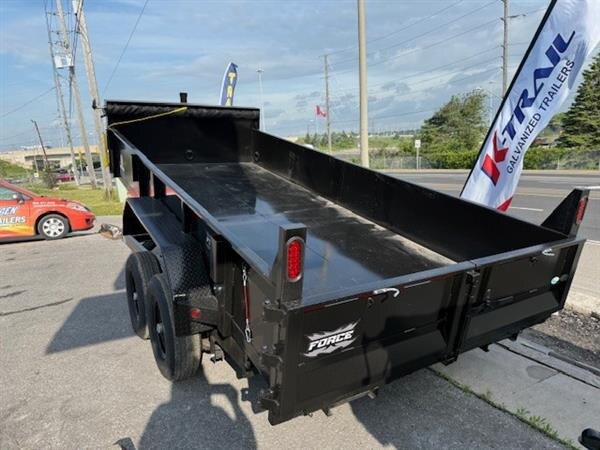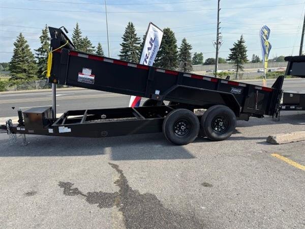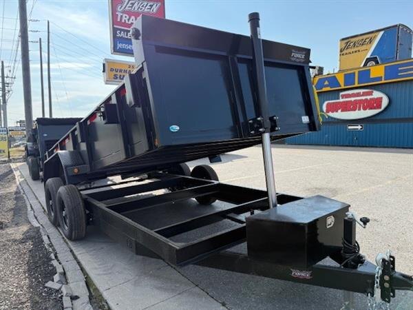 2025 Force 7'x16'-14k Pro Series Commercial Grade Tandem Dump Trailer 14000lb GVWR and a cargo capacity of around 10000lbs. This heavy duty trailer has all the options including, Ramps that slide under the trailer for storage, Telescopic front mount ram, plug in charging system, Tarp and roller, Pockets to install plank to increase side height, and much more. Call us at 905-571-2525 or send us an email to info@jensentrailers.com. We look forward to meeting you!
