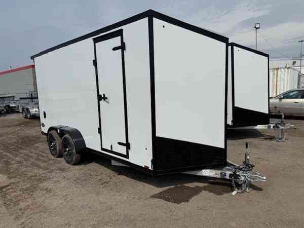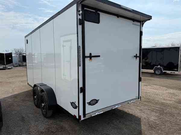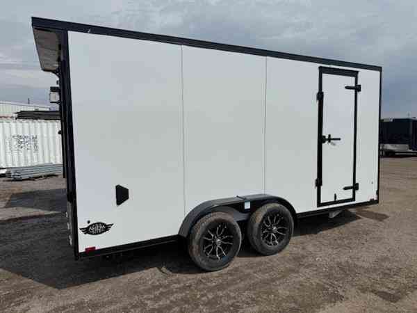 2025 AMERALITE 7X16 Tandem 3500lb axles GVWR 7000lbs and cargo capacity of aproximately 4800lbs. This PRO SERIES Commercial Grade trailer has every option including POLYCORE, DRYMAX interior, Cargo pkg with D-Rings, rear stabilizer jacks, spare tire mount, 7' interior height, RV flush lock with cam bar combo, roof vent, rear Rear spoiler with load lights, Black out package, aluminum wheels, 16" on center walls floor and roof, and no charge ramp door. Call us at 905-571-2525 or send us an email to info@jensentrailers.com. We look forward to meeting you!