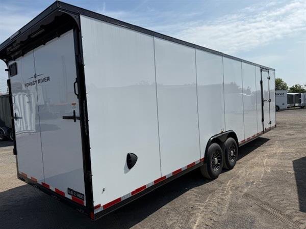 2026 Forest River 8.5'x28' Tandem 7000lb axles GVWR 14000lbs This Pro Series Commercial Grade trailer is loaded with options including POLYCORE exterior, 16" on center walls and roof, DRYMAX interior, Blackout package, Rear sprint wing spoiler with load lights, roof vent, 7' interior height, Flip up escape door with gas shocks, Aluminum wheels, Flush RV door lock with cam bar combo, ready for work or play! Call us at 905-571-2525 or send us an email to info@jensentrailers.com. We look forward to meeting you!