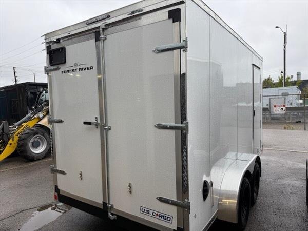 2026 Forest River 7X14 Tandem axle trailer GVWR 7000lbs with a cargo capacity of 4633lbs This Commercial Pro Grade trailer comes with these features 7'' interior height, Screwless exterior, 4 floor d-rings and 4 wall d-rings, rear stabilizer jacks, No charge Barn Doors at rear! Call us at 905-571-2525 or send us an email to info@jensentrailers.com. We look forward to meeting you!