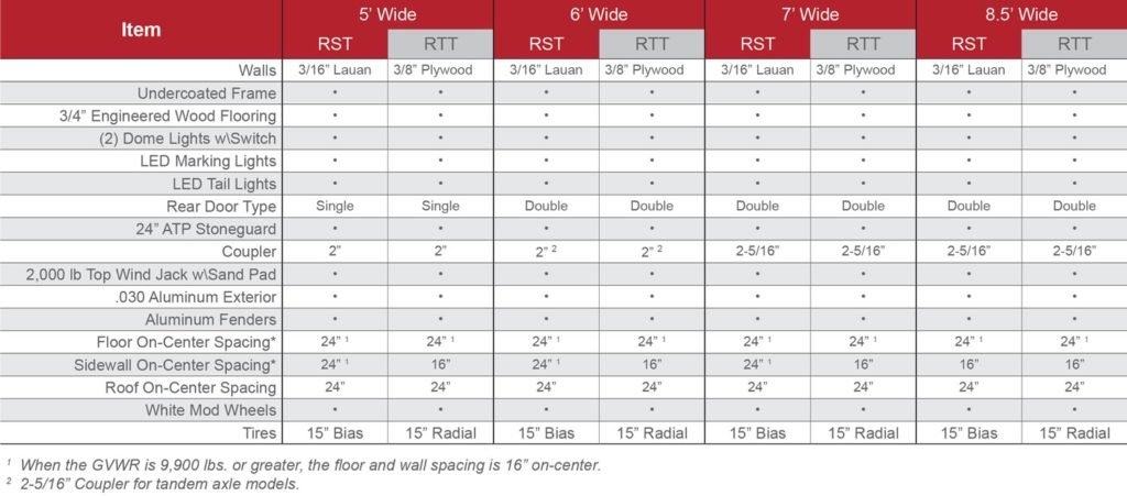 Round Top general cargo trailers offer versatility, good looks, aerodynamics and all weather durability. Once you’ve found the right size from our broad line, our super-sized selection of options guarantees a personalized trailer that will cover the tasks you need done. Check out the models and options for both steel and aluminum models, and talk to your dealer to see what we can do for you!