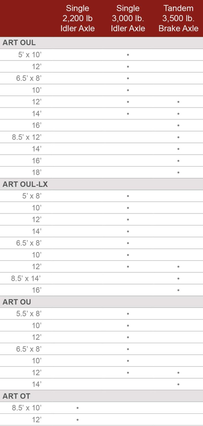 The ART OU Series is a great trailer for general purpose hauling. The lightweight aluminum frame makes it easy to tow. Lawnmowers, tractors, appliances and furniture can all be hauled easily and with a minimum of hassle.