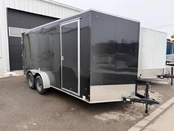 2026 Forest River 7x16 Tandem axle GVWR 7000lbs and a cargo capacity of 4700lbs. This budget friendly cargo trailer comes loaded with options including DRYMAX interior, Barn doors at rear, LED lights, One piece aluminum roof, 6'6" interior height, Side vents, RV style flush lock on man door, and much more. *****LIMITED QUANTITIES WHILE SUPPLY LASTS***** Call us at 905-571-2525 or send us an email to info@jensentrailers.com. We look forward to meeting you!