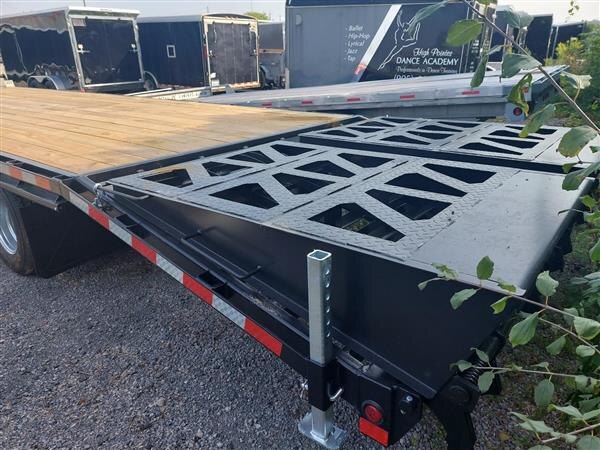 2026 Canada Trailer PHFT28'-24KD 28' Deck over with 5' beavertail and 5' mega ramps. GVWR 25920lbs and a load capacity of 18600lbs. Features include I beam construction, premium pintle series, Tandem dual 24K axles, Stake pockets and rub rails, side steps, winch track on drivers side, LED lights, Full width ramps, and Powder coat paint with scorpion stone guard. Call us at 905-571-2525 or send us an email to info@jensentrailers.com. We look forward to meeting you!