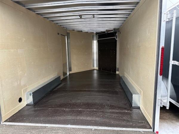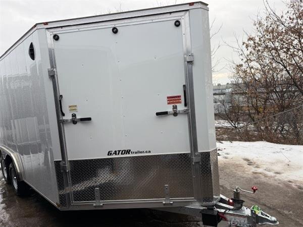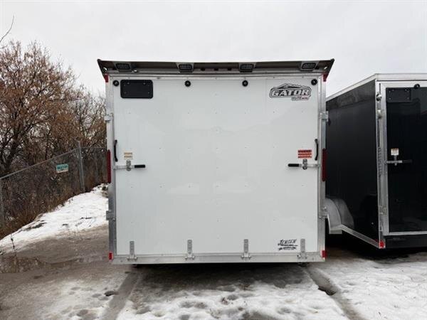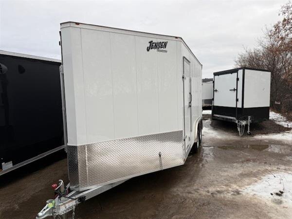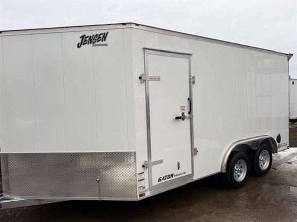 The Jensen Gator Elite Sport Series drive on and off trailer is proudly built in Canada and is designed for versatility, performance, and adventure. Finished in a clean white exterior, this trailer is equipped with two 3500 lb axles and measures 8.5 feet wide by 14 feet long plus a 5-foot V nose, providing ample space and balance for a wide range of powersports equipment. Its drive on and off design allows for easy loading and unloading of snowmobiles, ATVs, bikes, and more. Premium features include a rear sprint wing with integrated loading lights, a galvanized frame paired with an aluminum body for the ideal combination of weight savings, strength, and long-term durability. Whether heading to the trails or planning a fun filled weekend with friends and family, this trailer is the perfect companion for outdoor enthusiasts.