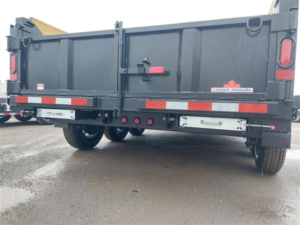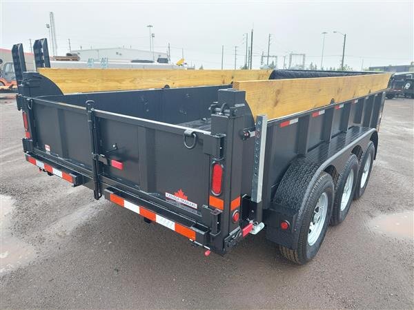 2026 Canada Trailer 83x16 Tri Axle 222680lb GVWR. This heavy duty commercial grade pro series dump trailer is the ultimate capacity trailer that is made in Canada, built with quality to provide many years of service. Features include electric brakes on all axles, 12000lb drop leg front jack, 20 inch steel sides plus 10 inch wood plank, two way rear gate, wireless remote with corded controls, lockable tool box, LED lights, HD fenders, and 5 inch hydraulic cylender. Call us at 905-571-2525 or send us an email to info@jensentrailers.com. We look forward to meeting you!