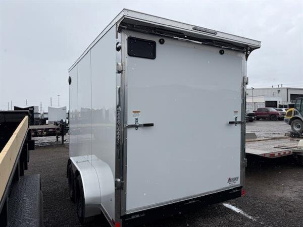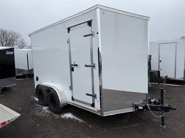 2026 Forest River 7X12 Tandem axle trailer GVWR 7000lbs with a cargo capacity of 4633lbs This Commercial Pro Grade trailer comes with these features Rear spoiler with load lights, 7 foot interior height, Screwless exterior, 4 floor d-rings and 4 wall d-rings, rear stabilizer jacks, No charge Ramp Door! Call us at 905-571-2525 or send us an email to info@jensentrailers.com. We look forward to meeting you!