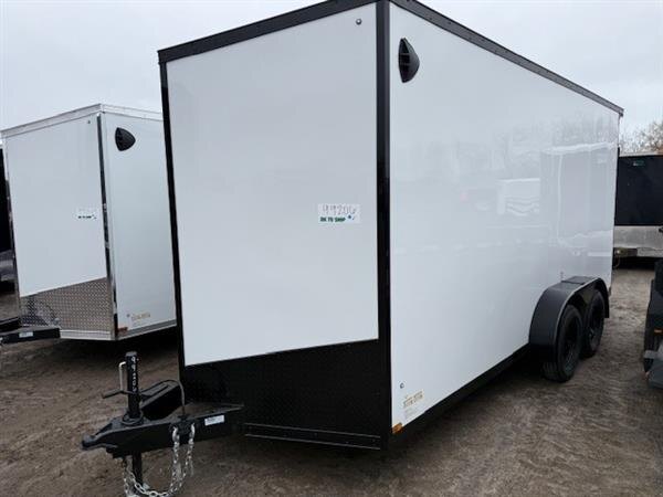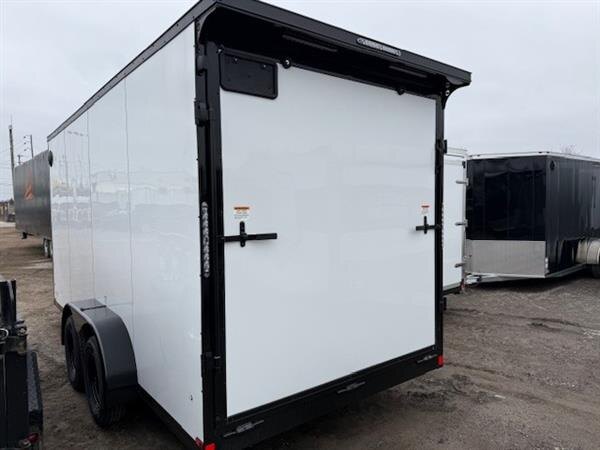 2026 Forest River 7X16 Tandem axle 7000 lb GVWR with a cargo capacity of nearly 4700lbs. This Commercial Grade Pro Series trailer has all the options screwless exterior, DRYMAX interior, 16" on center walls floor and roof, 7' interior height, cargo plus package 4 floor and 4 wall D-Rings, rear stabilizer jacks, spare tire, roof vent, RV flush lock, rear spoiler with load lights, Black out package, and more... No charge ramp door! Call us at 905-571-2525 or send us an email to info@jensentrailers.com. We look forward to meeting you!